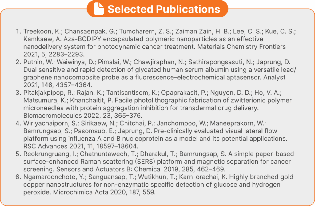 RMNS works along a clear line of translation: molecularly engineered materials → surface functionalization and targeting → signal generation and amplification → device fabrication and integration. The group’s portfolio spans biomarker detection, diagnostic readouts, minimally invasive micro/nano-interfaces, and responsive indicators for health, food, agriculture, and environmental contexts. By pairing nanoscale control with fit-for-purpose readouts (e.g., fluorescence, colorimetry, surface-enhanced Raman scattering, electrochemistry, nanopore), we aim for high sensitivity and specificity in formats that are practical for laboratories and field deployment alike.