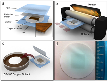Graphene can be directly transferred onto a variety of flexible substrates using a lamination process that does not require an intermediate “glue” step.