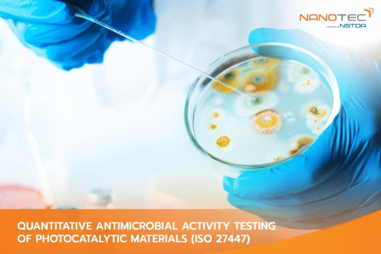 SEO Keywords (one line): iso 27447, microbiology testing,, nanotechnology, laboratory testing, photocatalytic antibacterial test, titanium dioxide tiO2 antimicrobial, quantitative antibacterial activity, illuminated surface test, self-cleaning coating validation, ceramic and glass antibacterial, building materials hygiene, healthcare surface coatings, materials testing thailand