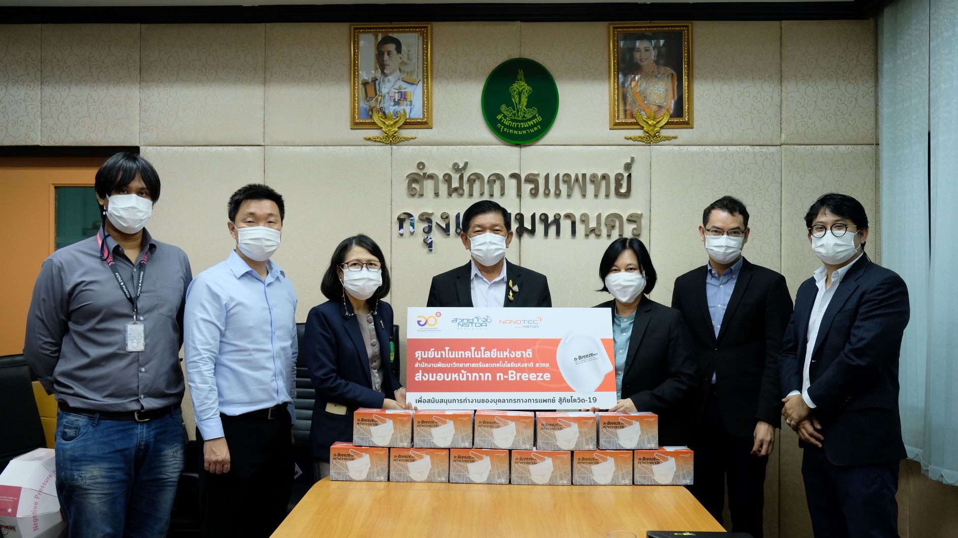 นาโนเทค สวทช. ส่งมอบ “นวัตกรรมแผ่นกรองจากเส้นใยสมบัติพิเศษ หน้ากากอนามัย n-Breeze M02 พร้อมสาธิตการใช้ nSPHERE Pressurized Helmet หมวกควบคุมแรงดันบวกและลบ