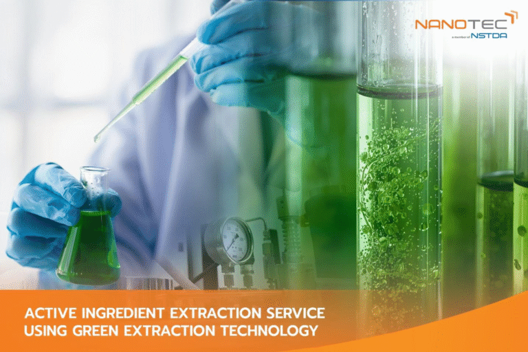 NANOTEC responds with Green Extraction, a service built and operated by the Nano-encapsulation Research Group within the Nanotechnology for Quality of Life and Cosmeceuticals team at the National Nanotechnology Center (NANOTEC), NSTDA. The group has developed extraction processes based on green-chemistry principles to obtain more of the target actives while reducing or eliminating hazardous solvents, producing extracts that are safer and more environmentally friendly, and aligning with Thailand’s BCG (Bio-Circular-Green) economy model.