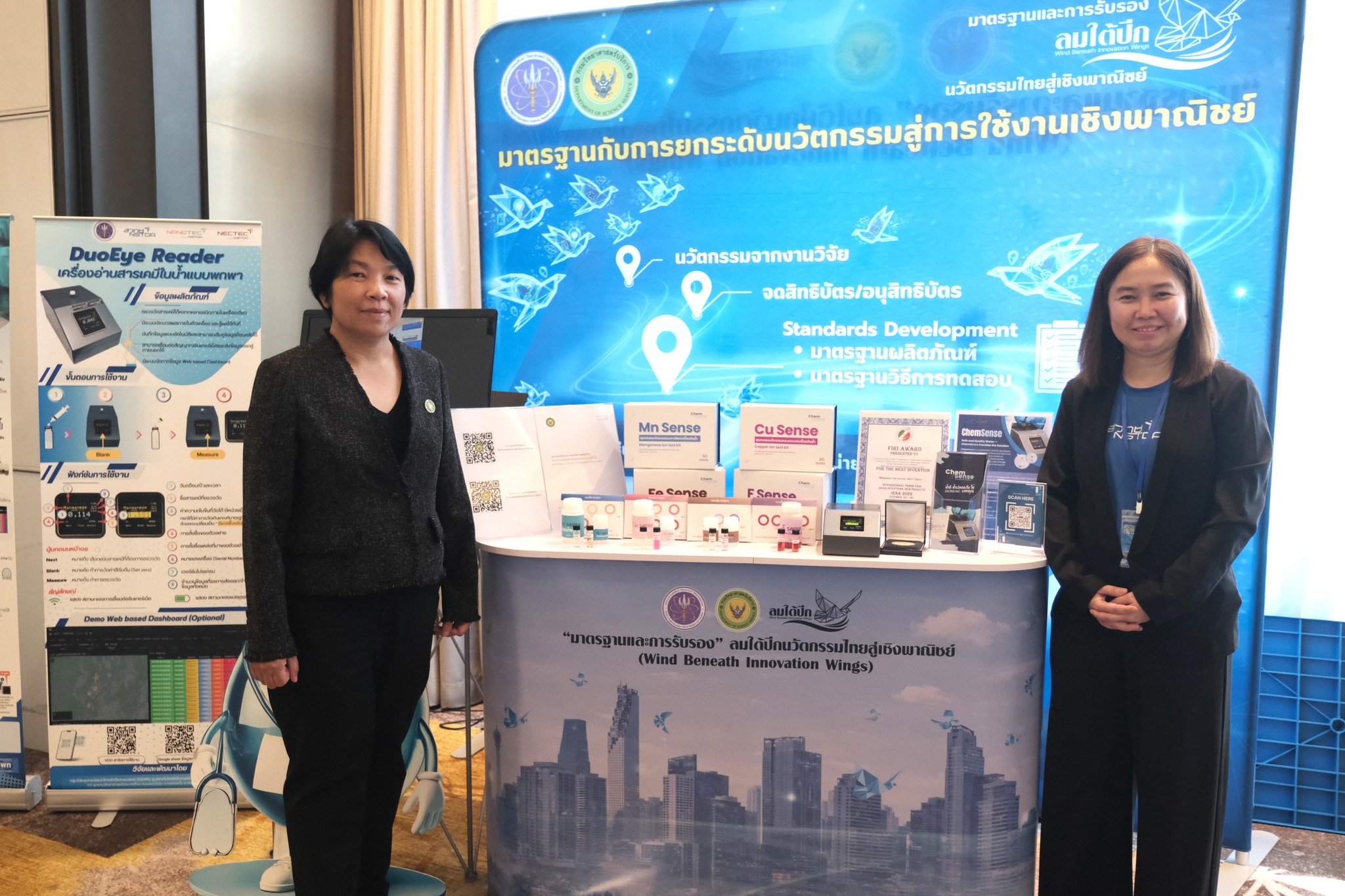 นาโนเทค สวทช. ร่วมออกบูทอวดโฉมนวัตกรรมชุดตรวจสารปนเปื้อนในน้ำในงานสัมมนาวิชาการหัวข้อ “มาตรฐานและการรับรอง” ลมใต้ปีกนวัตกรรมไทยสู่เชิงพาณิชย์ (Wind Beneath Innovation Wings) โดย วศ. อว.