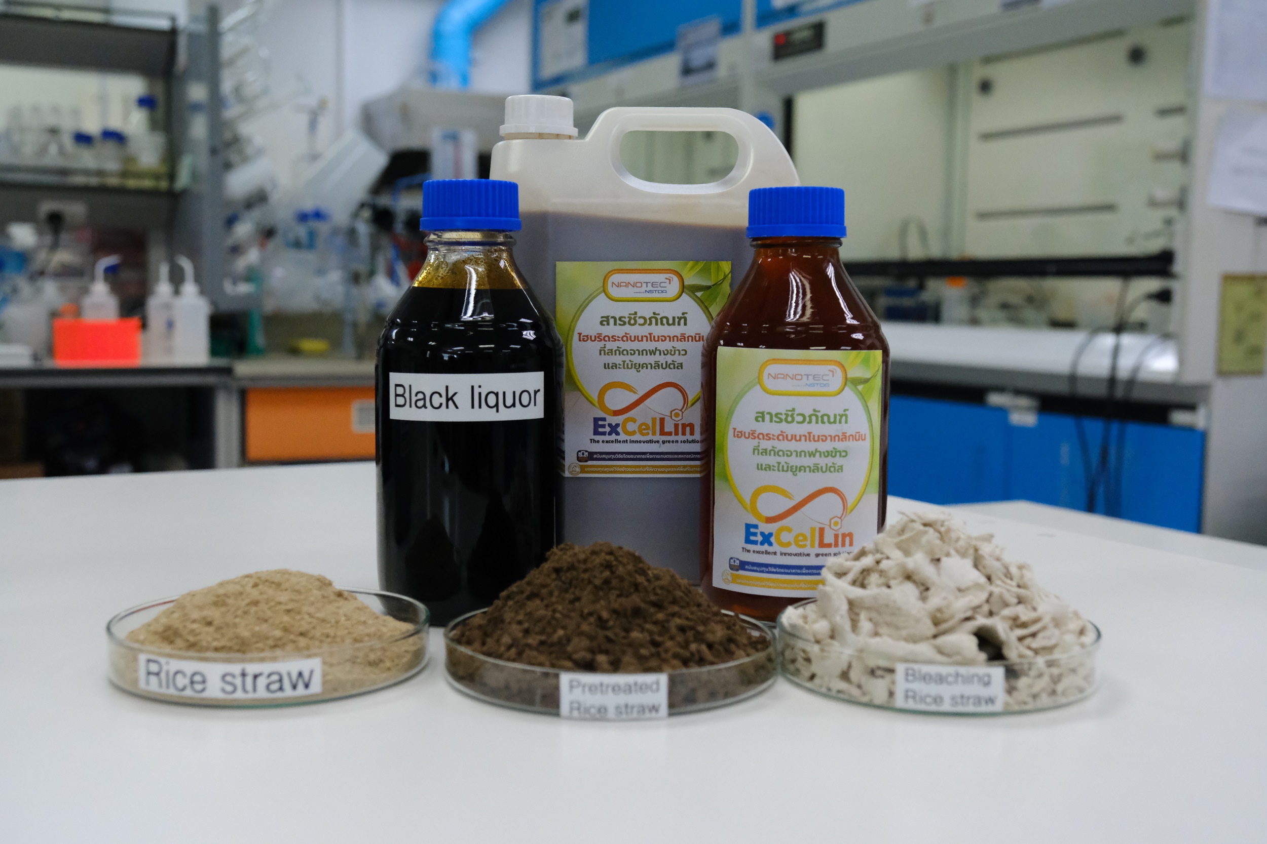 งานวิจัย “การพัฒนาสารชีวภัณฑ์ไฮบริดระดับนาโนจากลิกนินที่สกัดจากวัสดุเหลือใช้ทางการเกษตรเพื่อใช้ในการป้องกันและยับยั้งเชื้อราก่อโรคในนาข้าว” จึงเกิดขึ้น ด้วยเป้าหมายเพื่อแก้ไขและลดความเสียหายได้โดยการฟื้นฟูระบบการเกษตรจากการนำวัสดุเหลือใช้ทางการเกษตรในท้องถิ่นอย่างฟางข้าว ซึ่งมีปริมาณคงเหลือมากถึง 11 ล้านตันต่อปี หรือของเสียจากกระบวนการผลิตของอุตสาหกรรมเยื่อและกระดาษ มาผลิตเป็นสารชีวภัณฑ์จากธรรมชาติ เพื่อทดแทนการใช้สารเคมีอันตราย