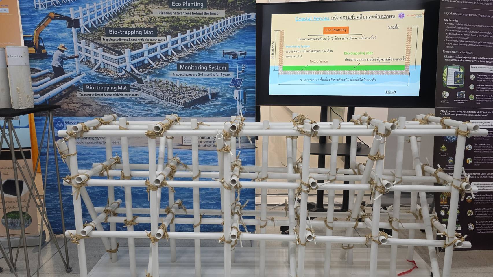 นวัตกรรมนี้พัฒนาขึ้นโดย กลุ่มวิจัยวัสดุผสมและกระบวนการนาโน หนึ่งในงานวิจัยของ นาโนเทค สวทช. ที่จะเข้ามามีส่วนในการสนับสนุนด้านการอนุรักษ์และฟื้นฟูป่าชายเลน ไม่เพียงลดผลกระทบต่อสิ่งแวดล้อม แต่ยังช่วยลดต้นทุนการซ่อมบำรุงและลดปริมาณขยะเมื่อเทียบกับการใช้โครงสร้างแข็งแบบเดิม โดยจะนำไปประยุกต์สู่การบริหารจัดการเชิงพื้นที่ เพื่อการลดปัญหาการกัดเซาะชายฝั่งด้วยเทคโนโลยีที่เป็นมิตรต่อสิ่งแวดล้อมในระยะยาว