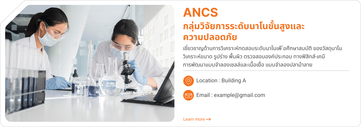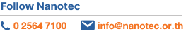 Contect Us ติดต่อนาโนเทค First Name *Last NameEmail Address *Phone *Subject *Your Message *Submit ที่อยู่ สำนักงานพัฒนาวิทยาศาสตร์และเทคโนโลยีแห่งชาติ เลขที่ 111 อาคารกลุ่มนวัตกรรม 2 ทาวเวอร์ B ถนนพหลโยธิน ต.คลองหนึ่ง อำเภอคลองหลวง จ.ปทุมธานี 12120 ช่องทางติดต่อ โทรศัพท์ : 02 5647100แฟกซ์ : 02 5646985 เวลาเปิดทำการ จันทร์ – ศุกร์ : 08:00 – 16:00 น. ติดต่อสอบถาม/งานประชาสัมพันธ์ info@nanotec.or.th ติดต่อหนังสือราชการ/งานสารบรรณ saraban@nstda.or.th ติดต่อสอบถาม/งานประชาสัมพันธ์ info@nanotec.or.th Research Group หน่วยวิจัยนาโนเทค