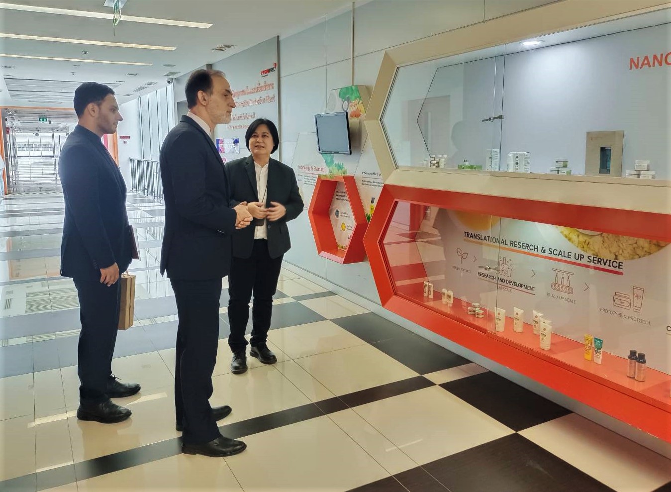 In this regard, Dr. Pavadee Aungkavattana, Deputy Executive Director of NANOTEC led H.E. Seyed Reza Nobakhti and Mr. Mansour Kiaei, First Secretary to visit the Nanoparticle and Cosmetic Production Plant. This innovative facility, operating under the auspices of NANOTEC, is dedicated to leveraging nanotechnology innovations in the realm of nano-particle production for various applications including cosmetics. It serves as a platform to motivate entrepreneurs in cosmetic industries to integrate nanotechnological advancements into their products.
