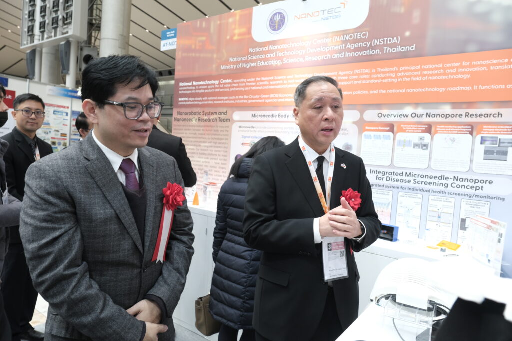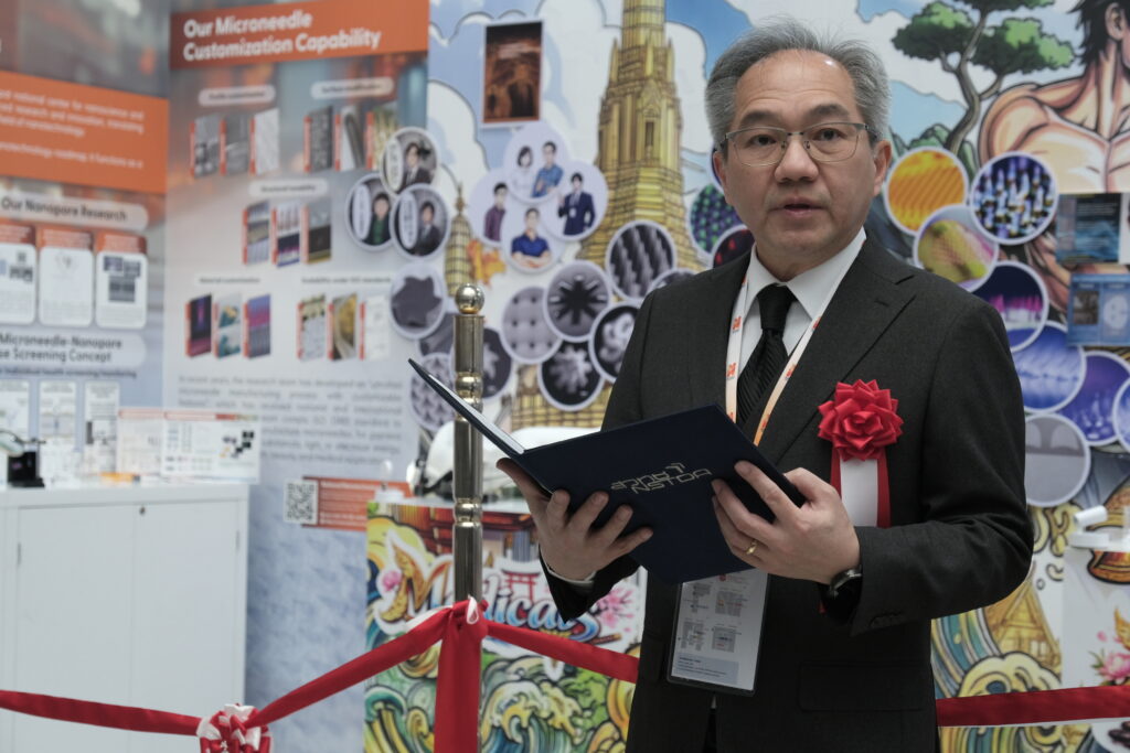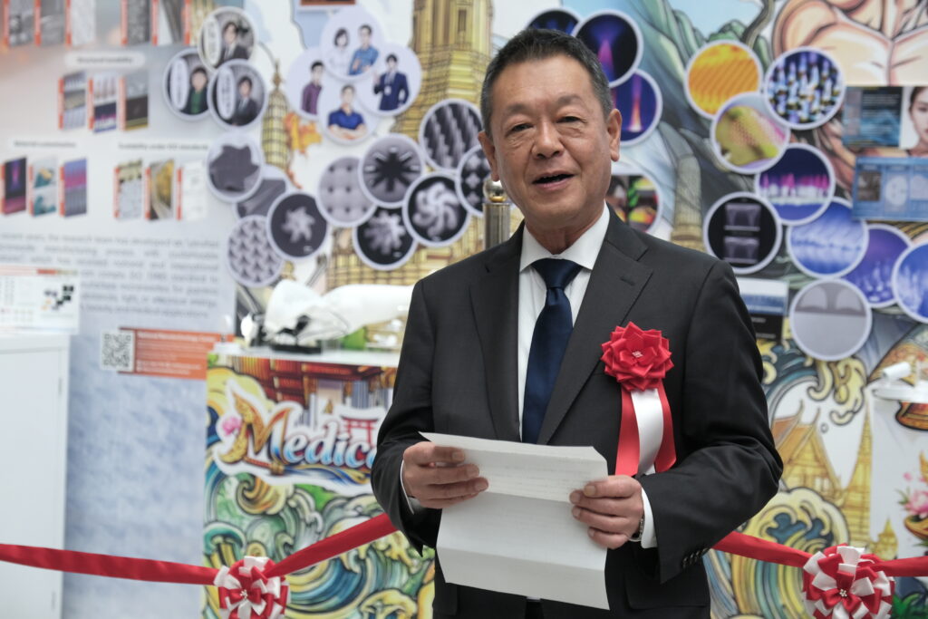 The opening ceremony was presided over by H.E. Mr. Witchu Vejjajiva, Ambassador of Thailand to Japan. The pavilion showcases advanced nanomaterial innovations, highlighting micro/nanoneedle (Microspike) technologies with broad applications in healthcare, beauty, and biomedical industries.