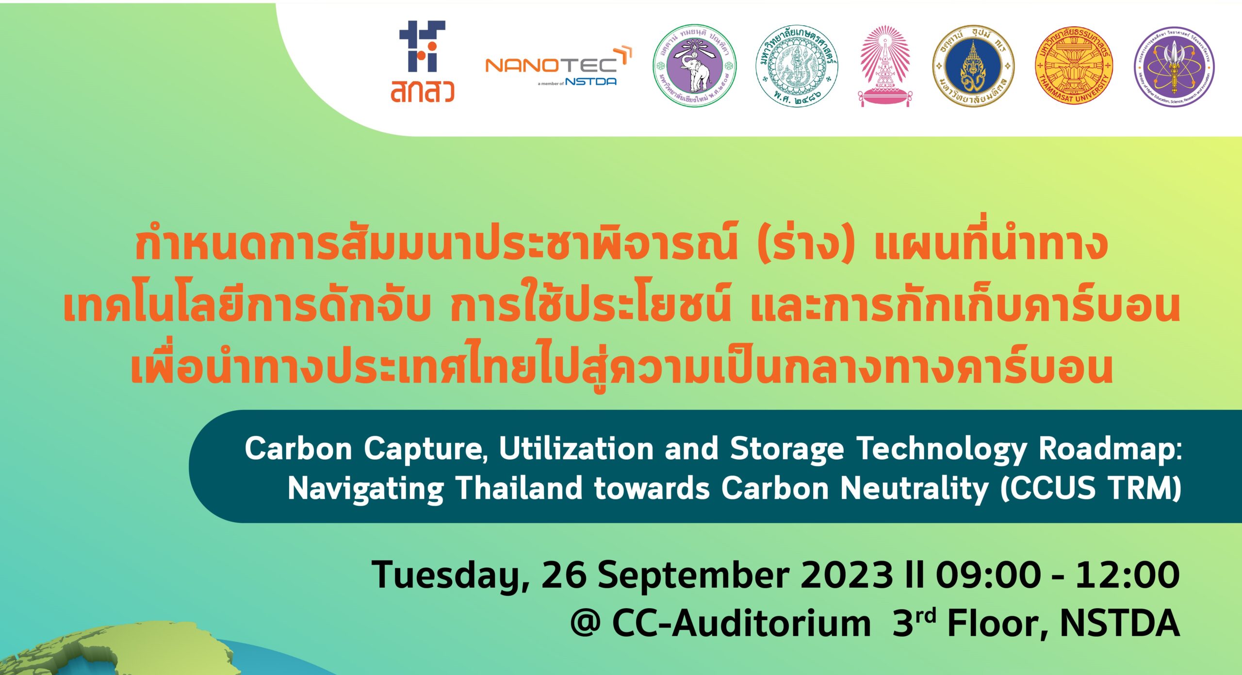 ขอเชิญร่วมการสัมมนาประชาพิจารณ์ (ร่าง) แผนที่นำทางเทคโนโลยีการดักจับการใช้ประโยชน์ และการกักเก็บคาร์บอน เพื่อนำทางประเทศไทยไปสู่ความเป็นกลางทางคาร์บอน
