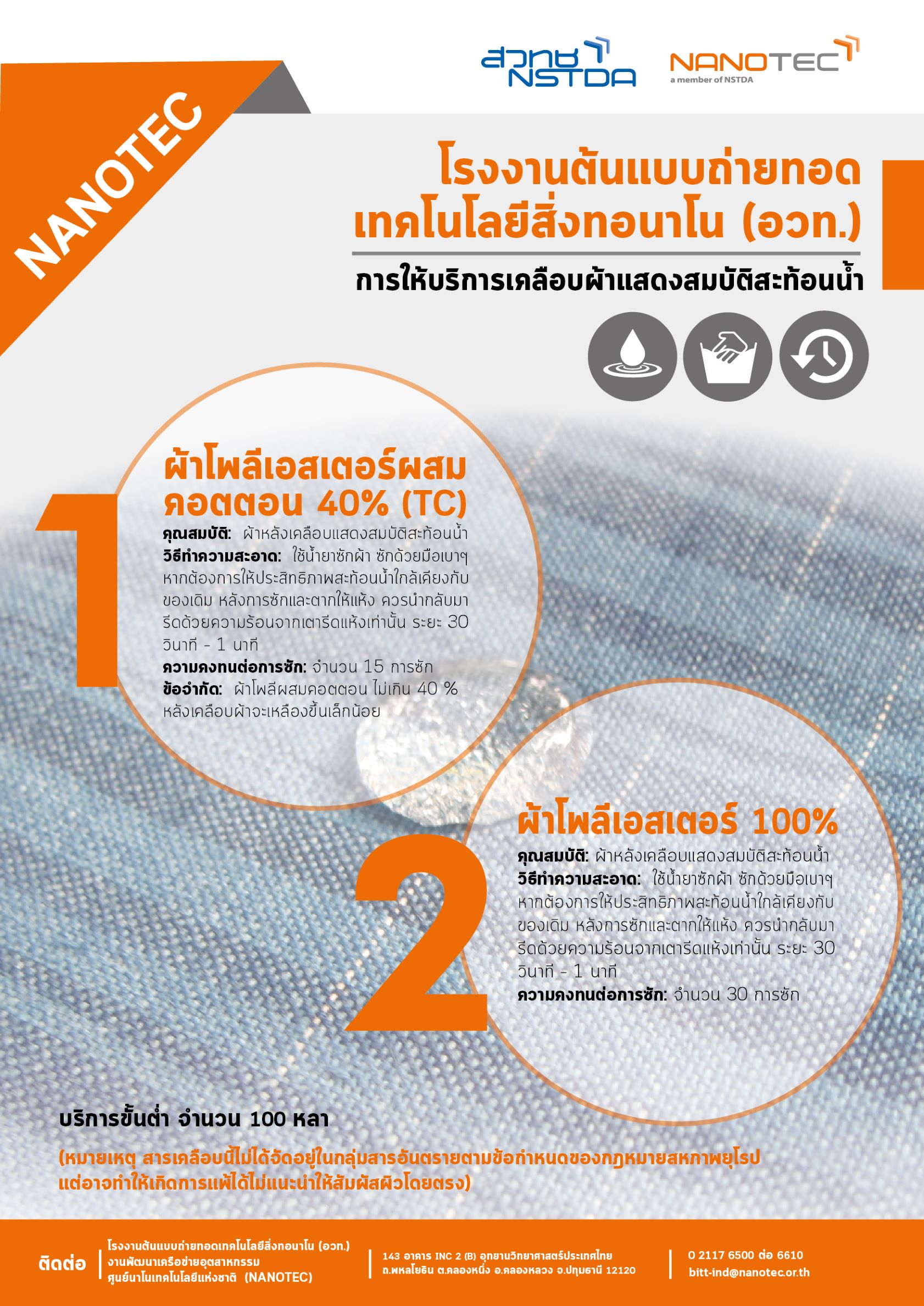 นาโนเทคเปิดให้บริการเคลือบสิ่งทอ “สมบัติสะท้อนน้ำ”
