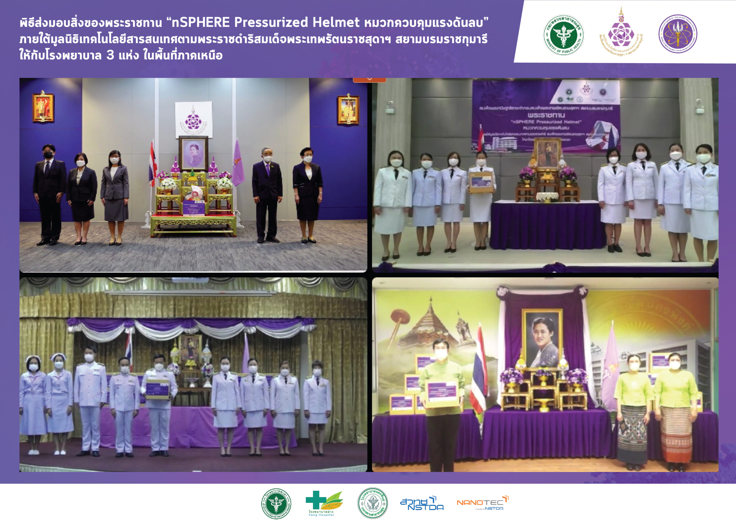 มูลนิธิเทคโนโลยีสารสนเทศตามพระราชดำริสมเด็จพระเทพรัตนราชสุดาฯ สยามบรมราชกุมารี ส่งมอบสิ่งของพระราชทาน “หมวกควบคุมแรงดันลบ (nSPHERE-)” โดยนาโนเทค สวทช. ให้กับ 3 โรงพยาบาลในพื้นที่ภาคเหนือ