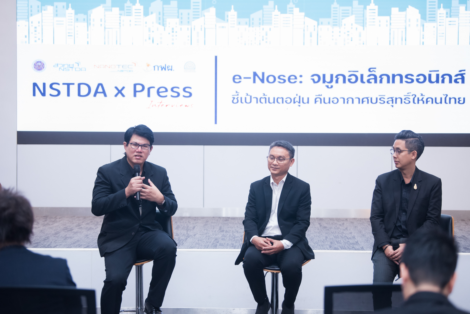 ขณะที่ ดร.ศักดา ตรีเดช ผู้อำนวยการส่วนนวัตกรรมคุณภาพอากาศและเสียง กรมควบคุมมลพิษ (คพ.) ซึ่งเป็นหน่วยงานกำหนดนโยบาย ภายใต้กระทรวงทรัพยากรธรรมชาติและสิ่งแวดล้อม (ทส.) กล่าวว่า หัวใจสำคัญของการควบคุมมลพิษคือ “ข้อมูลที่แม่นยำ” (Precision Monitoring) ประเทศไทยจำเป็นต้องมีนวัตกรรมที่สามารถชี้เป้าแหล่งกำเนิดฝุ่นได้ตรงจุด e-Nose จะเป็นจิ๊กซอว์สำคัญที่สร้างฐานข้อมูลบิ๊กดาต้าให้กับกรมควบคุมมลพิษ เพื่อนำไปจัดทำมาตรการรับมือ บังคับใช้กฎหมาย และวางกรอบนโยบายควบคุมคุณภาพอากาศของประเทศให้เข้าเป้าและเกิดผลสัมฤทธิ์สูงสุด