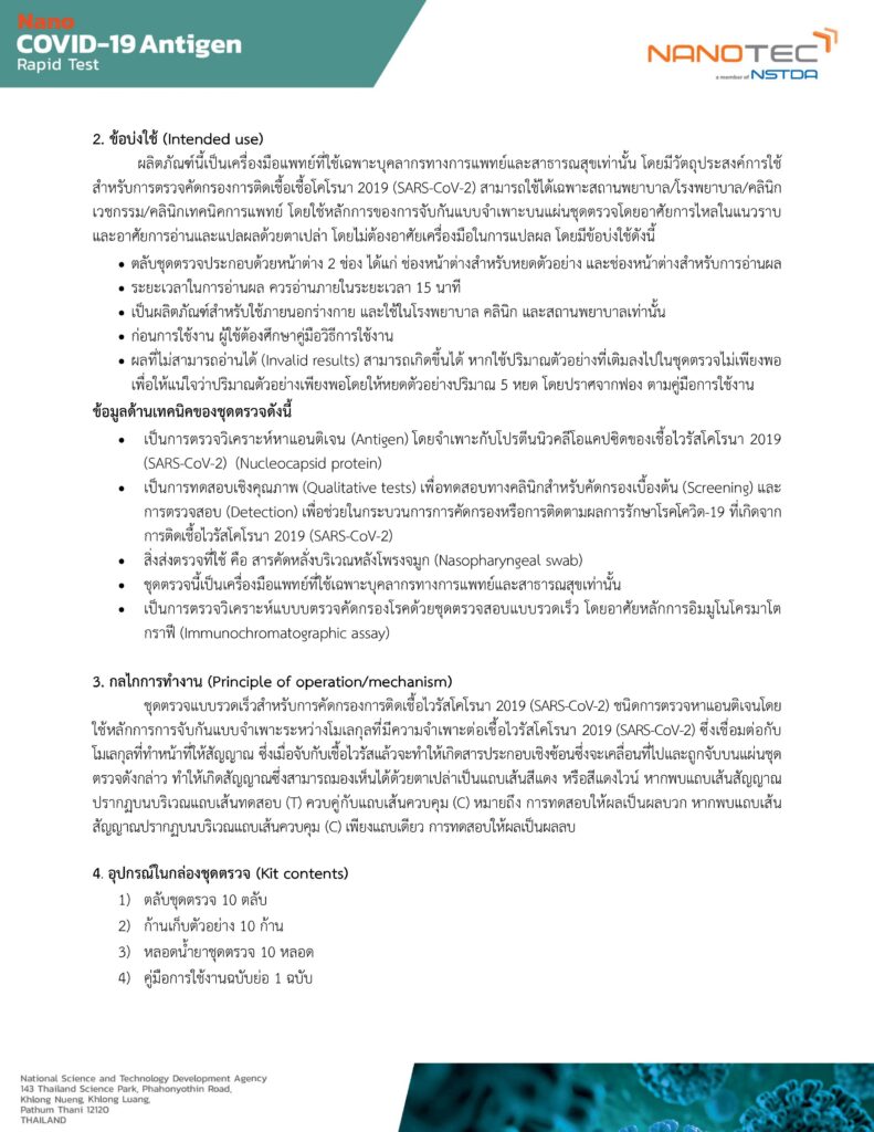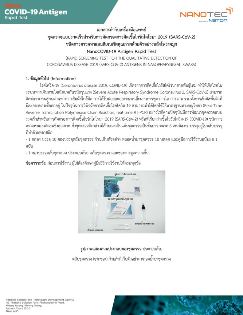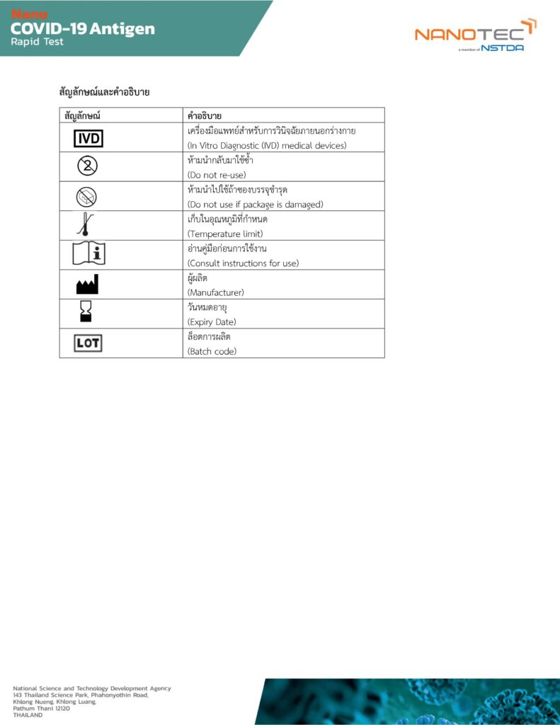 PDF: เอกสารกำกับเครื่องมือแพทย์ (Instruction For Use) สำหรับชุดตรวจ NanoCOVID-19 Antigen Rapid Test (Professional Use)