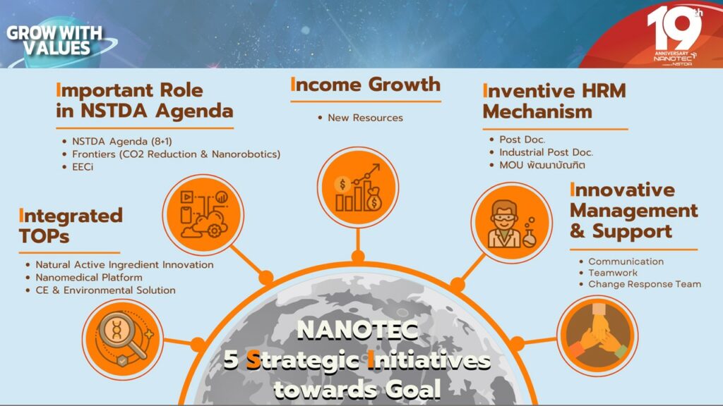“นาโนเทคกำลังก้าวเข้าสู่ปีที่ 19 ซึ่งเป็นปีแห่งการเติบโตอย่างมีพลังและมีคุณค่า” ดร.วรรณี ฉินศิริกุล ผู้อำนวยการนาโนเทค กล่าว พร้อมบอกเล่าถึงเส้นทางที่ผ่านมาว่า หากย้อนกลับไปตอนปีที่ 13 ของนาโนเทคในธีม The art of We ซึ่งคำว่า We สำคัญและมีความหมายมาก