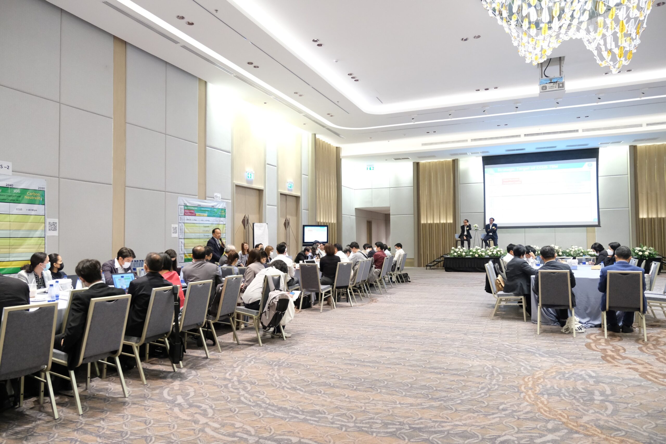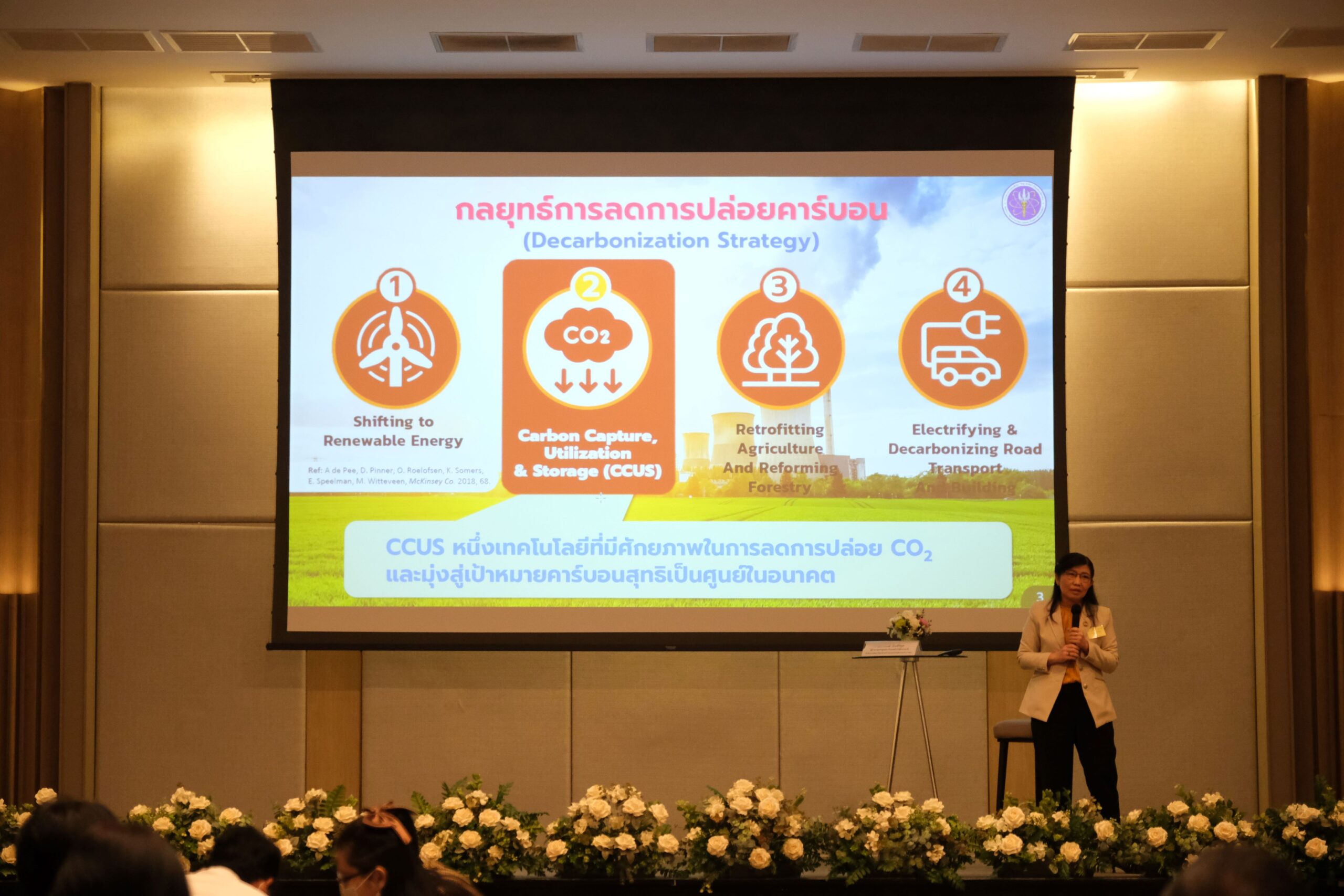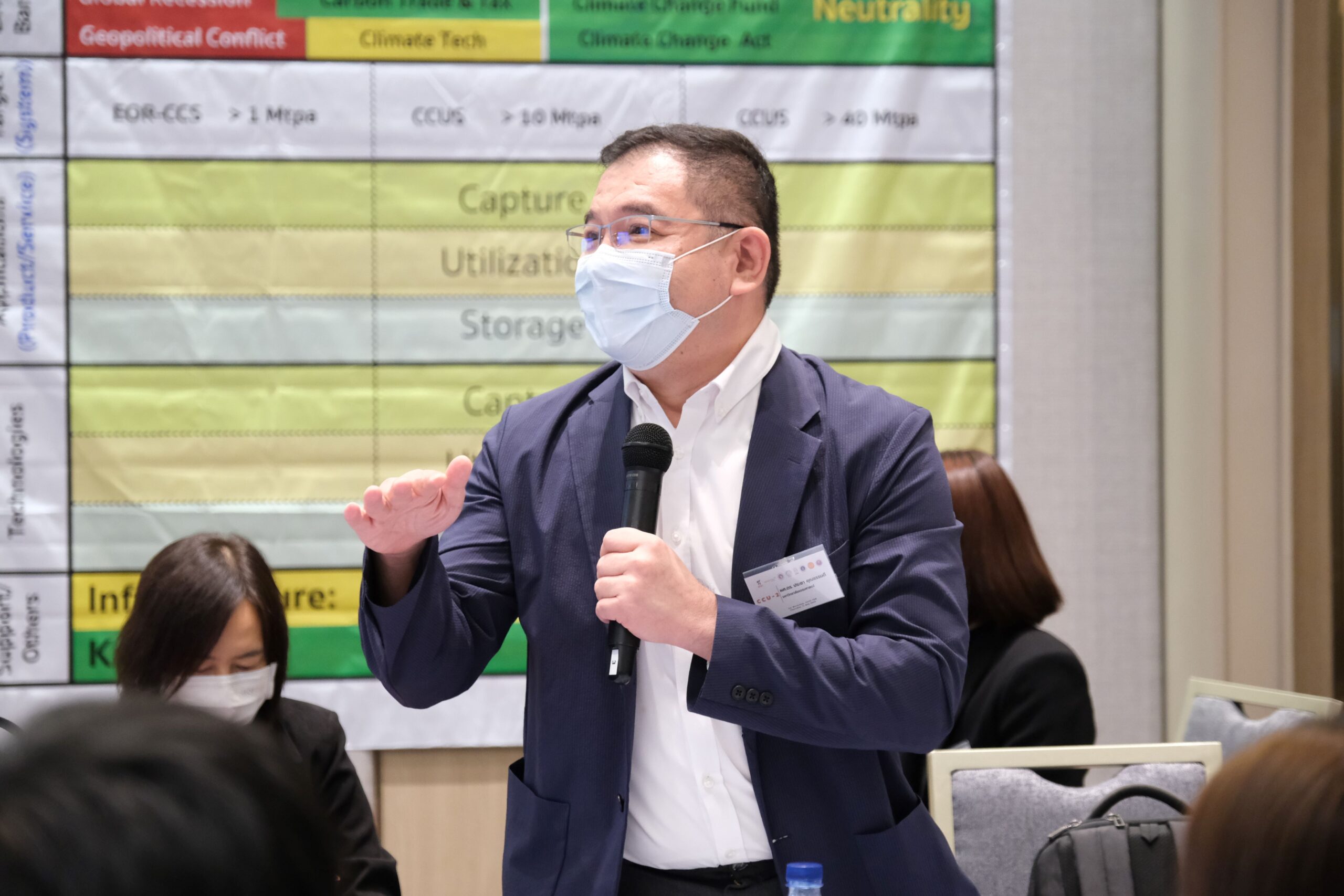 ภายในงาน มีการบรรยายพิเศษแลกเปลี่ยนเรียนรู้ ในประเด็น “การประยุกต์ใช้เทคโนโลยี CCUS เพื่อมุ่งสู่ Carbon Neutrality และ Net Zero” โดยคุณสุรชัย วังรัตนชัย Carbon Capture and Utilization Director บริษัท เอสซีจี ซิเมนต์ จำกัด, คุณพงษ์กิตติ์ ลักษมีพิเชษฐ์ ผู้จัดการอาวุโส ฝ่าย Carbon Capture and Utilization (CCU) และ Hydrogen บริษัท ปตท. สำรวจและผลิตปิโตรเลียม จำกัด (มหาชน) และ ศ.ดร.วรงค์ ปวราจารย์ ประธานคณะทำงาน CCUS Consortium คณะวิศวกรรมศาสตร์ จุฬาลงกรณ์มหาวิทยาลัย