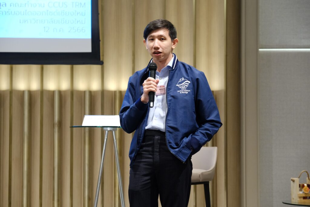 ภายใต้กิจกรรมมีการรายงานร่าง CCUS TRM โดยสรุปผลจากการสัมมนาเชิงปฏิบัติการครั้งที่ 1 ทั้งในมิติ CCU และ CCS TRM โดย ดร. ขจรศักดิ์ เฟื่องนวกิจ ผู้อำนวยการกลุ่มวิจัยการเร่งปฏิกิริยาและการคำนวณระดับนาโน นาโนเทค สวทช. และ ผศ. ดร. สุพฤทธิ์ ตั้งพทธิ์กุล หัวหน้ากลุ่มวิจัยการดักจับและกักเก็บคาร์บอนไดออกไซด์ มหาวิทยาลัยเชียงใหม่ ตามลำดับ