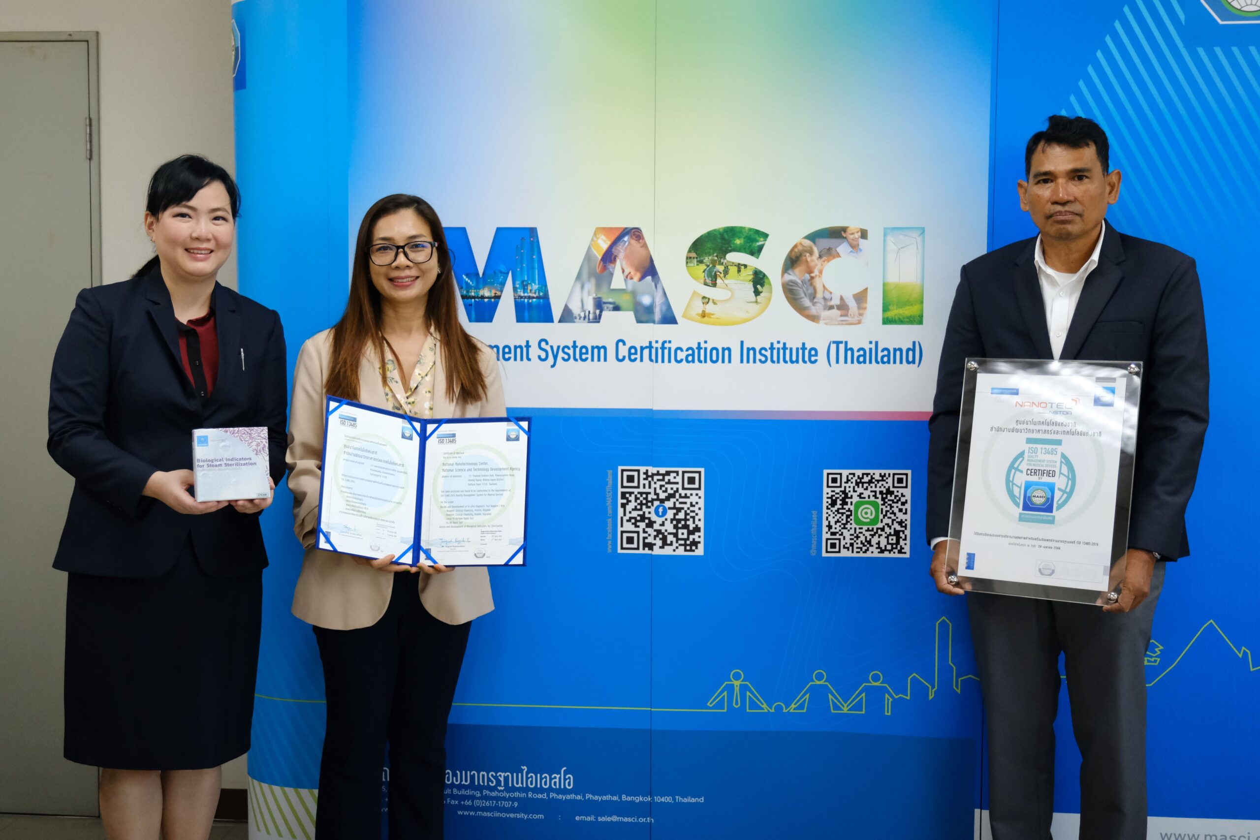 ใบรับรองระบบบริหารงานคุณภาพสำหรับเครื่องมือแพทย์ ISO 13485:2016 เป็นการรับรองใน 2 ส่วน คือ การออกแบบและพัฒนาชุดตรวจและน้ำยาสำหรับวินิจฉัยภายนอกร่างกาย ประกอบด้วย ชุดตรวจโปรตีนอัลบูมินเพื่อคัดกรองโรคไต (GO-sensor Albumin test), ชุดตรวจไกลเคทเตตอัลบูมินสำหรับคัดกรองและตรวจติดตามโรคเบาหวาน (SugarAL), ชุดตรวจเชื้อไวรัสโคโรนา 2019 (NANO Covid-19 Antigen Rapid Test), ชุดตรวจเชื้อไวรัสไข้หวัดใหญ่ (NanoFlu Rapid Test) และการออกแบบและพัฒนาตัวบ่งชี้ทางชีวภาพเพื่อทดสอบประสิทธิภาพการฆ่าเชื้อ (Biological Indicators: BI)