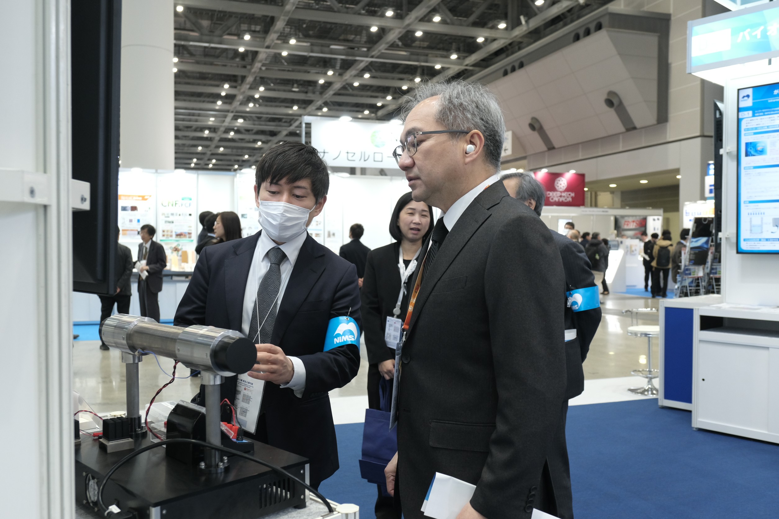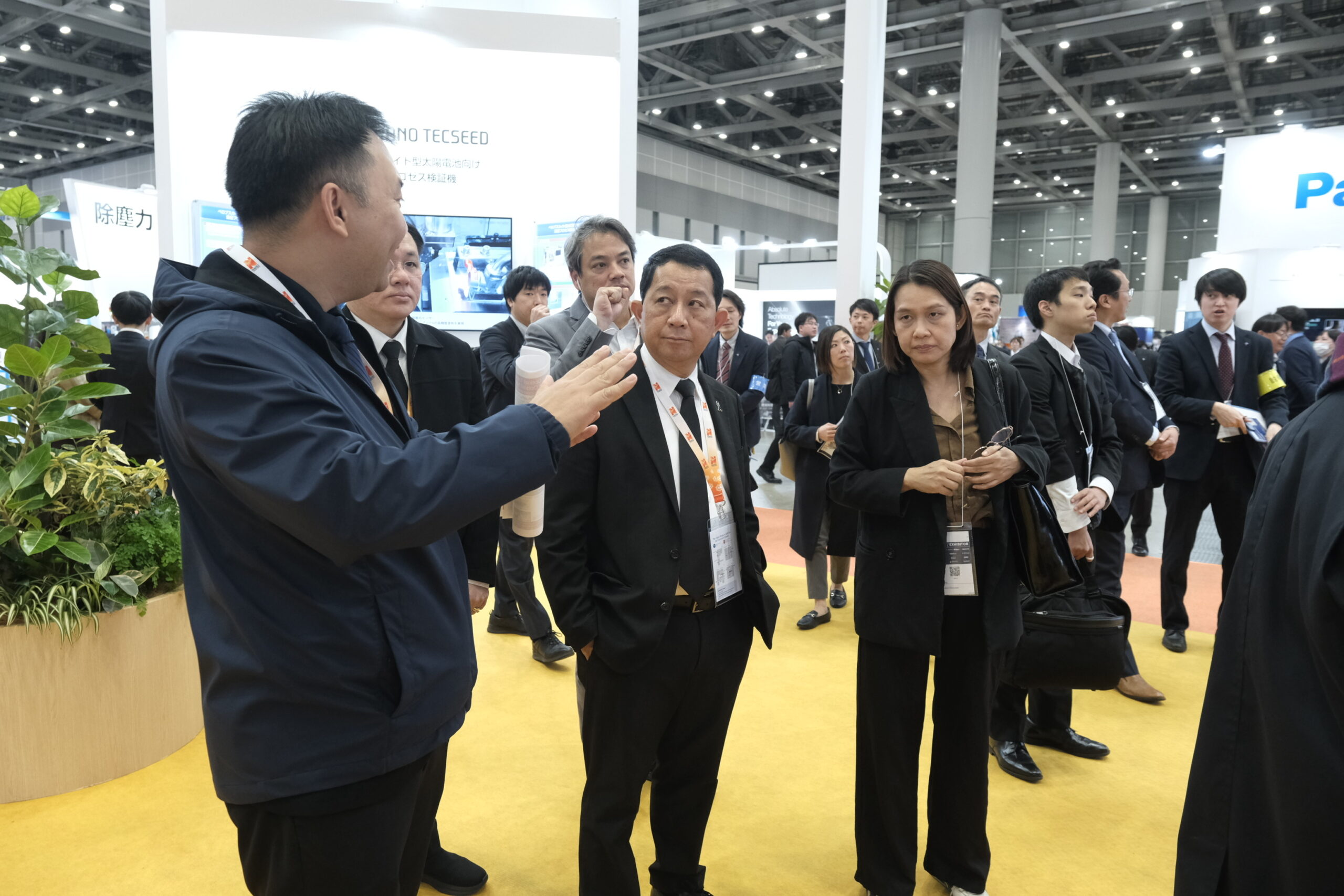 ในการนี้ คณะฯ ได้เข้าชมนิทรรศการผลงานจากหน่วยงานพันธมิตรในญี่ปุ่น อาทิ NIMS หรือ National Institute for Materials Science สถาบันวิจัยด้านวัสดุศาสตร์แห่งชาติของประเทศญี่ปุ่น หน่วยงานวิจัยและพัฒนาขั้นสูงที่เน้นการพัฒนาเทคโนโลยีวัสดุใหม่ นาโนเทคโนโลยีและวัสดุอัจฉริยะ โดยนำ AI และ Materials Informatics มาประยุกต์ใช้ในการพัฒนาวัสดุชนิดใหม่, RIKEN สถาบันวิจัยทางวิทยาศาสตร์ของรัฐบาลญี่ปุ่น ปีนี้เน้นการนำเสนอ Quantum Technology Innovation Hub คอมพิวเตอร์ควอนตัมที่ให้ความแม่นยำในระดับนาโน ซึ่งจะเป็นจุดเปลี่ยนสำคัญของเทคโนโลยีรุ่นถัดไป, AIST หรือ The Nation Institute of Advanced Industrial Science and Technology เน้นนำเสนอวัสดุคอมโพสิตใหม่ที่มีฟังก์ชั่นการดักจับก๊าซเสียและบำบัดน้ำเสีย ตลอดจน NEDO องค์การพัฒนาพลังงานใหม่และเทคโนโลยีอุตสาหกรรมของญี่ปุ่นที่เน้นโชว์แผนยุทธศาสตร์ Carbon Neutrality และเทคโนโลยี CCUS ที่เปลี่ยนคาร์บอนให้เป็นพลังงาน